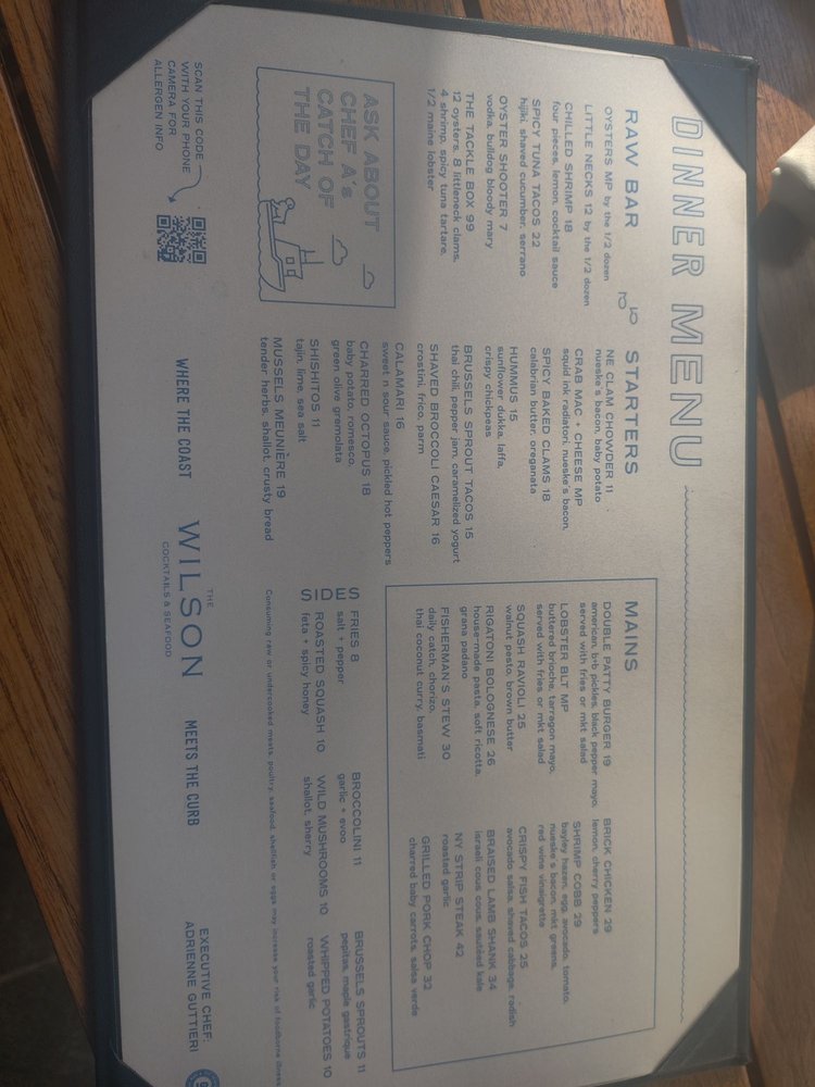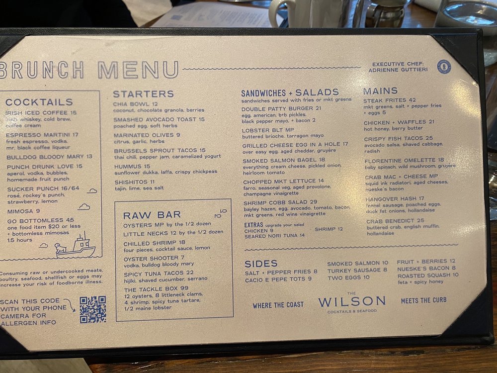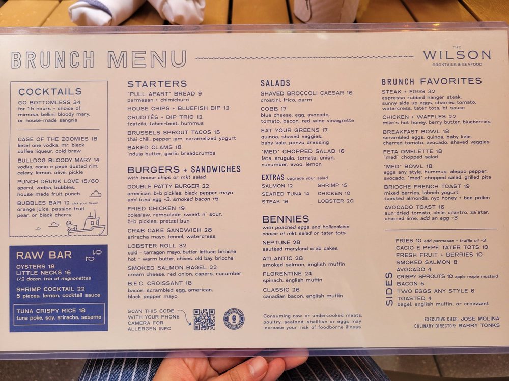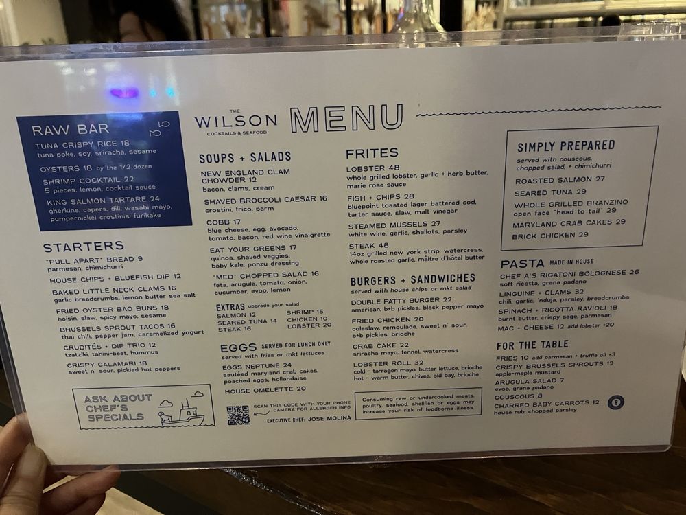 Introducing the menu at The Wilson, a delightful New American eatery located at 132 W 27th St, New York, NY. The restaurant offers a vibrant atmosphere perfect for breakfast, brunch, or a casual drink at the bar. The salads are not to be missed, with highlights like the Shaved Broccoli Caesar Salad and the refreshing Eat Your Greens Salad, each brimming with fresh ingredients.